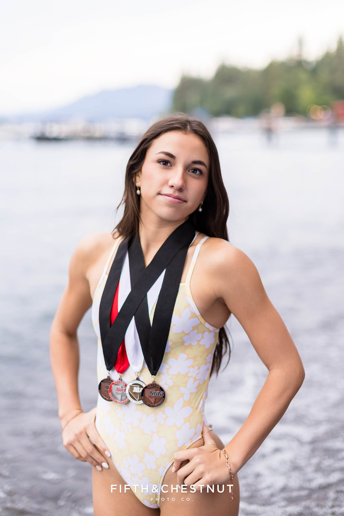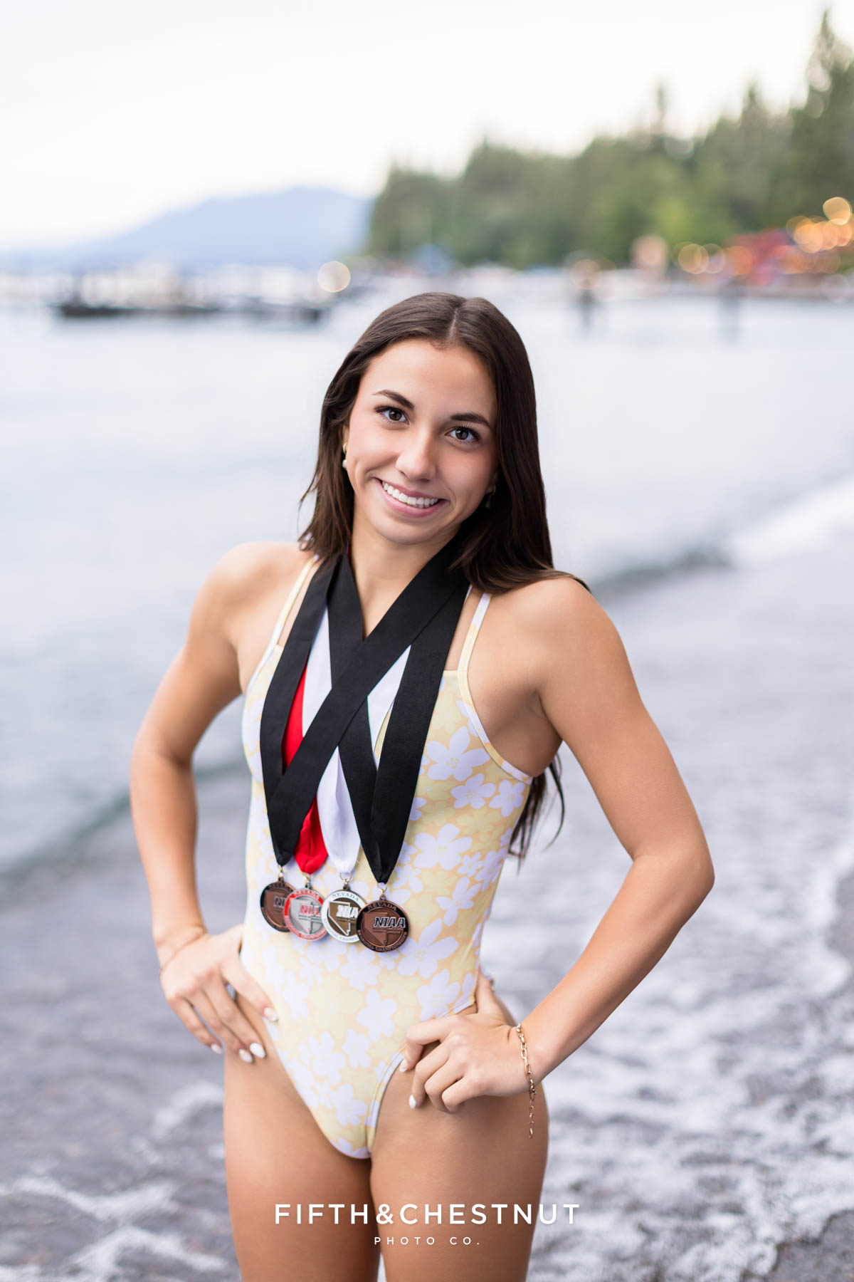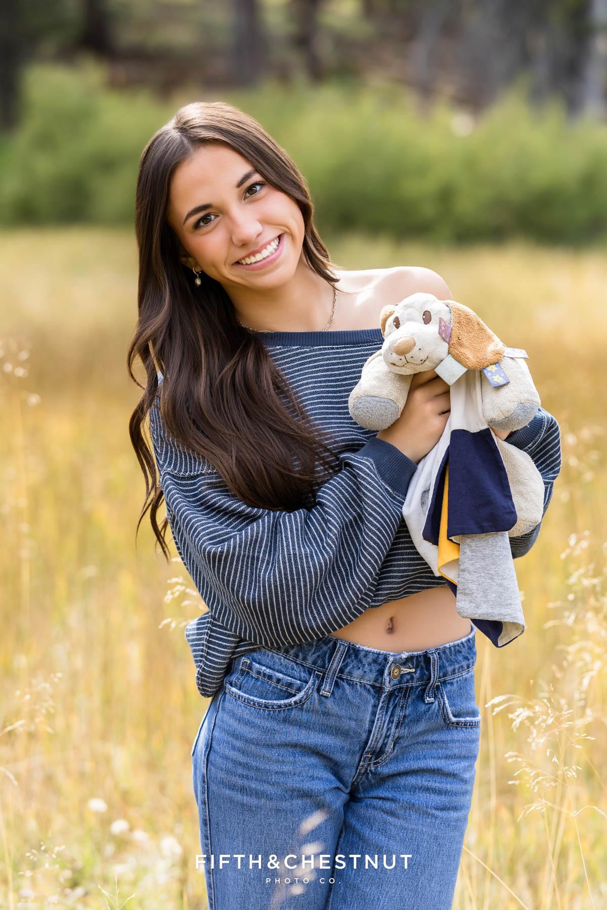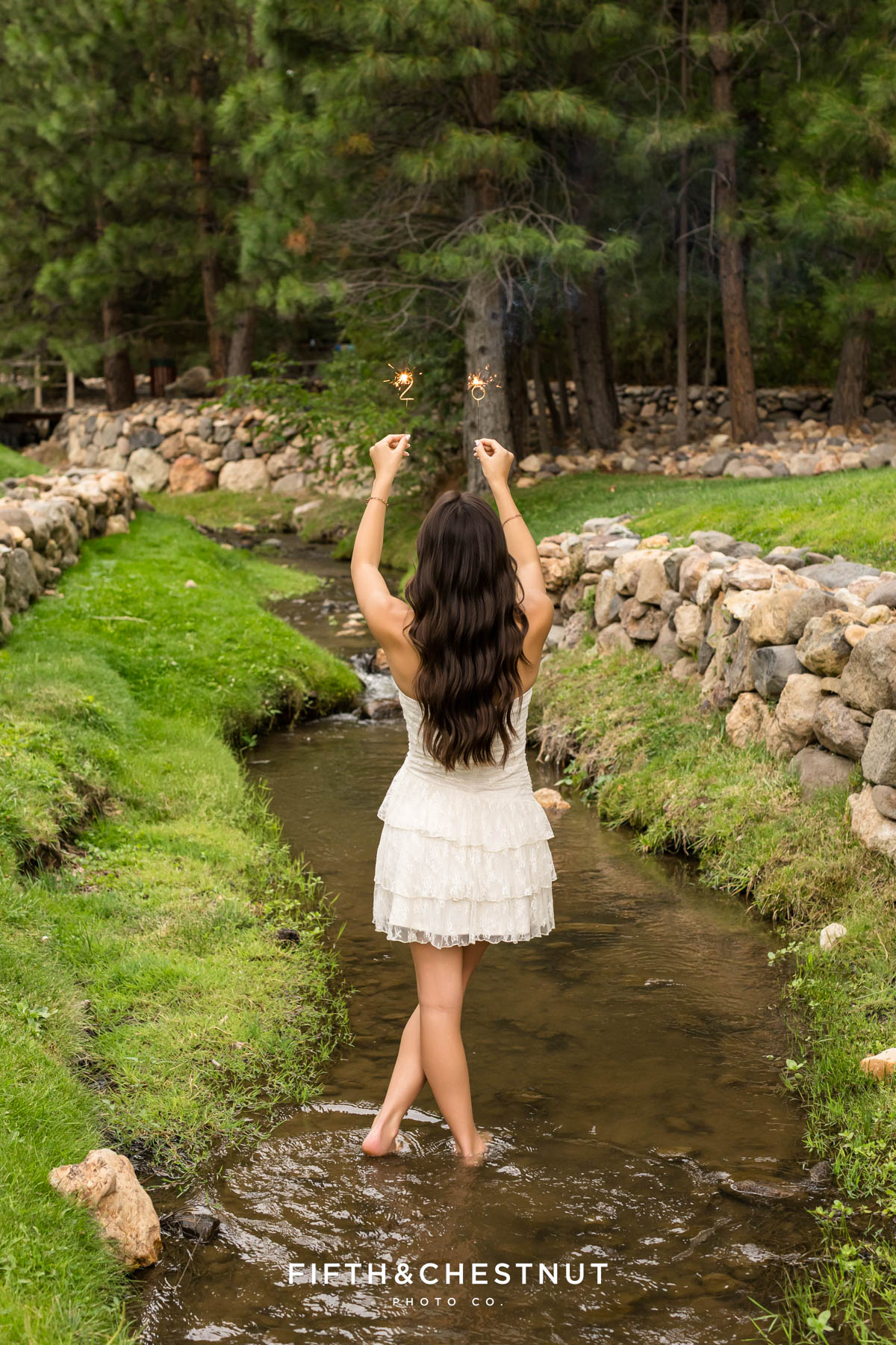 Aliya’s outfits and props were absolutely perfect. From a dreamy white dress in the creek to cozy Tahoe jeans and a flowy sundress in the meadow, each look felt like her. She even brought along her soccer gear to highlight her time playing for Apex and added some touches to showcase her swim life with the Sparks Piranhas and Spanish Springs High School. Above all, I love when seniors bring outfits and props that show off who they are. It makes the portraits so authentic and fun. And highlighting Aliya’s passions and accomplishments was so amazing!