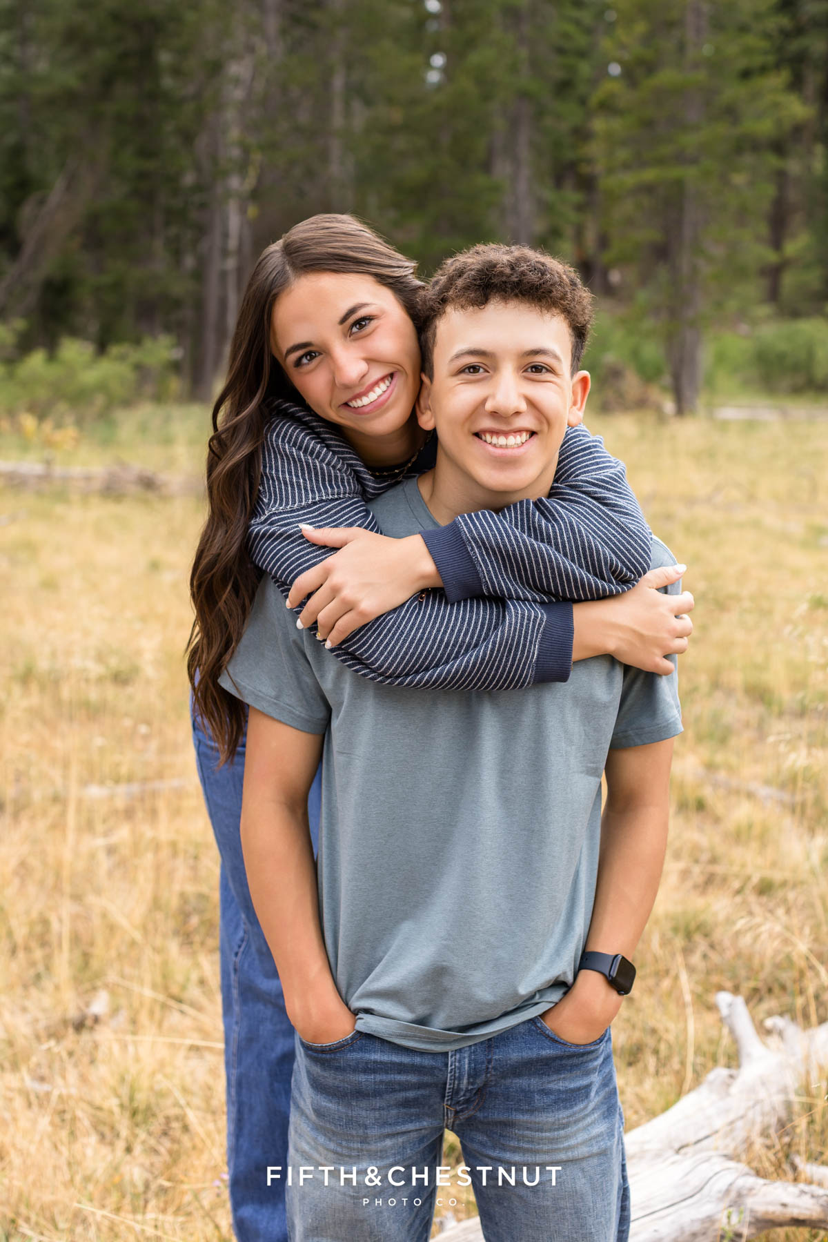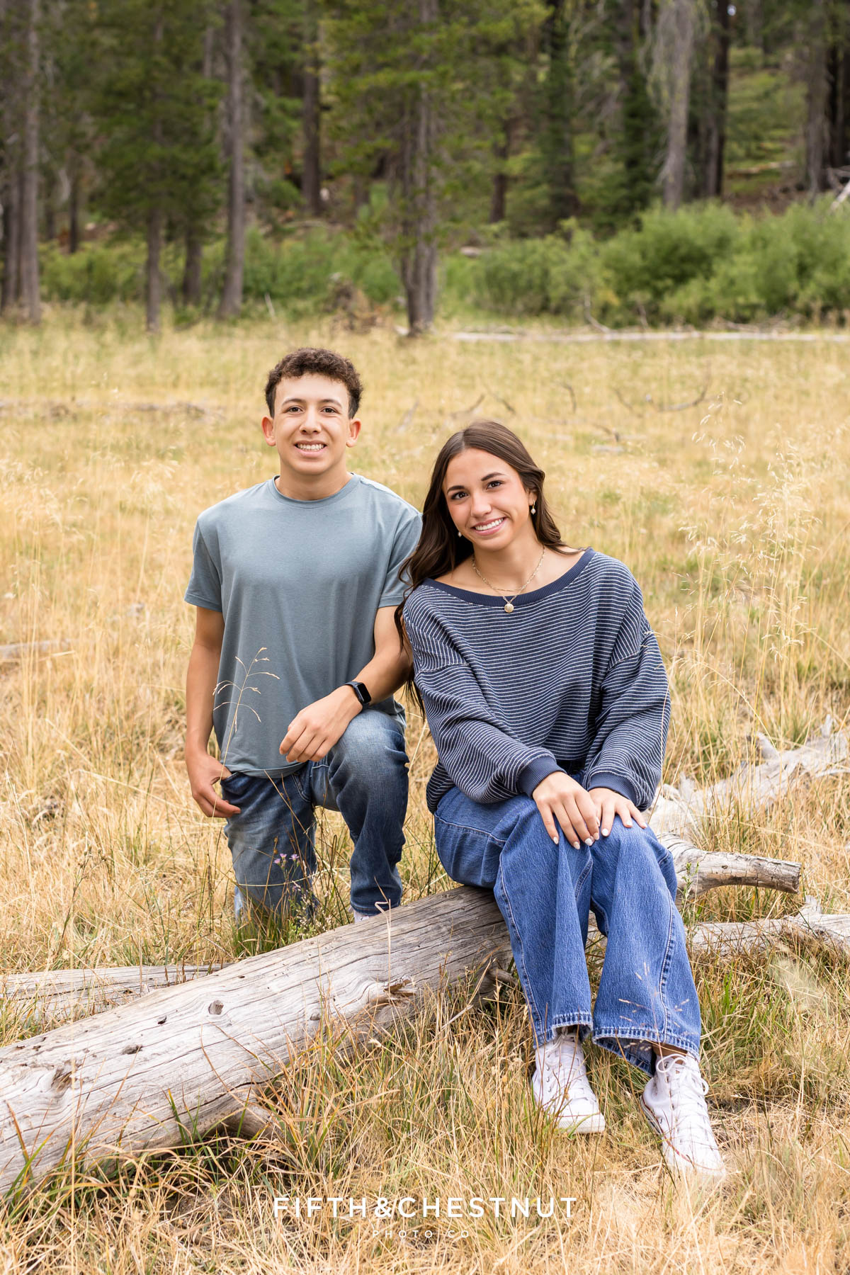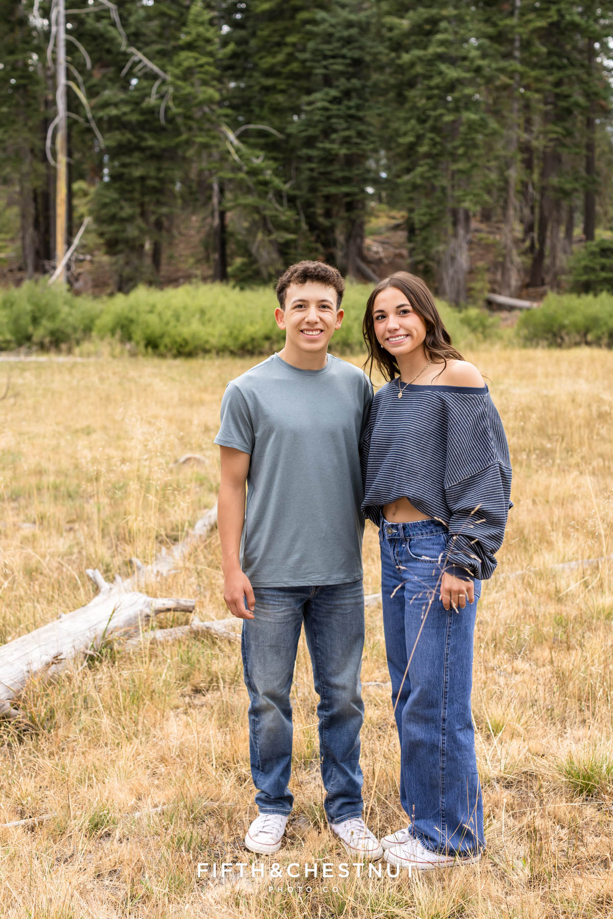 On the drive from Reno to Tahoe, a flash flood warning popped up on our phones. And the rain was definitely coming down. But somehow, by the time we reached Page Meadows, the rain was light and scattered. Just a sprinkle here and there. Honestly, looking at the photos, you’d never know the weather was anything but perfect! We got so lucky, and I’m so thankful the session went smoothly despite the forecast.