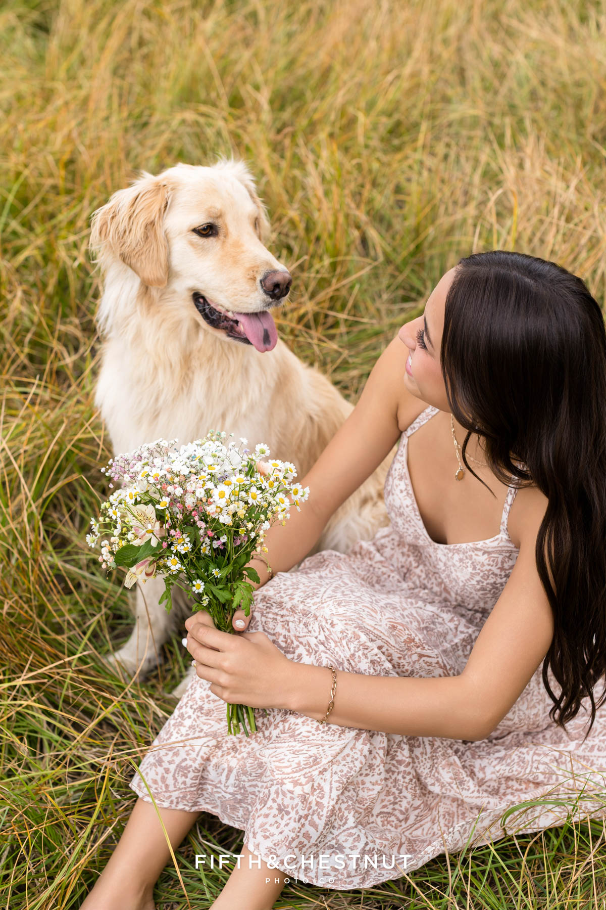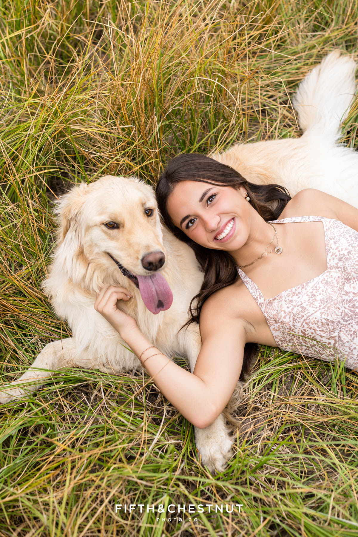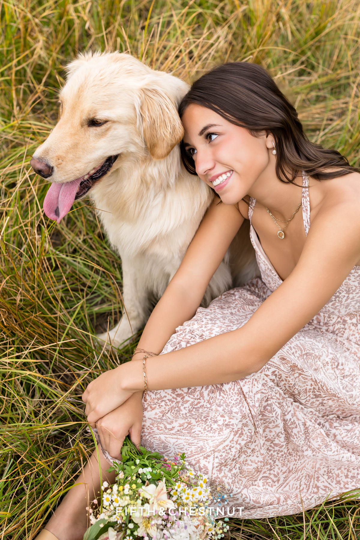 Throughout Aliya’s session, we included portraits with her sweet golden retriever Harper, who was a total star…and we also got photos with her Uncle’s beautiful pupper as well. Of course, we also captured moments with her parents and younger brother, which added such a heartfelt layer to the whole shoot. I love including family in senior sessions – it’s such a special time for everyone, and those images always become family favorites.