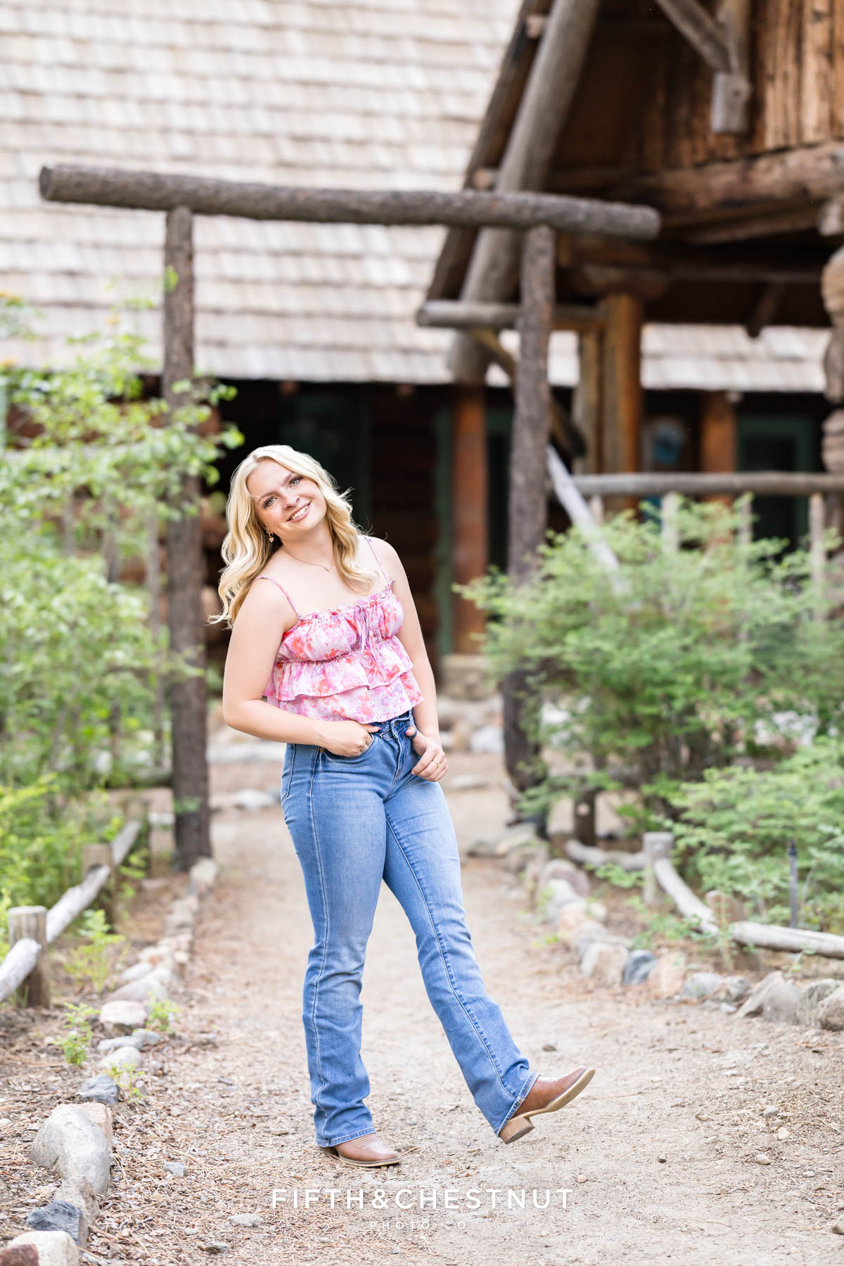 I had the best time creating the most gorgeous and eclectic country-style senior portraits in South Lake Tahoe with Natalie, a member of my Class of 2026 Senior VIP Team. We started our session at the Tallac Historic Site, which is such a charming spot. Then we headed to Kiva Beach, just a short ways away. The rustic buildings, lakeshore, and mountain views gave us the perfect mix of backdrops!