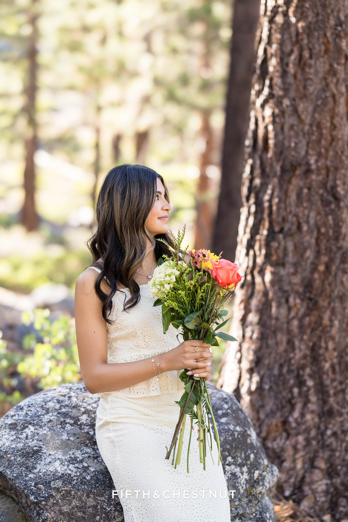 Her first outfit was a soft neutral dress that worked perfectly with the forest tones. The light fabric and simple style felt timeless against the trees and granite boulders. This outfit also worked perfectly for the prettiest mother/daugther portraits!
