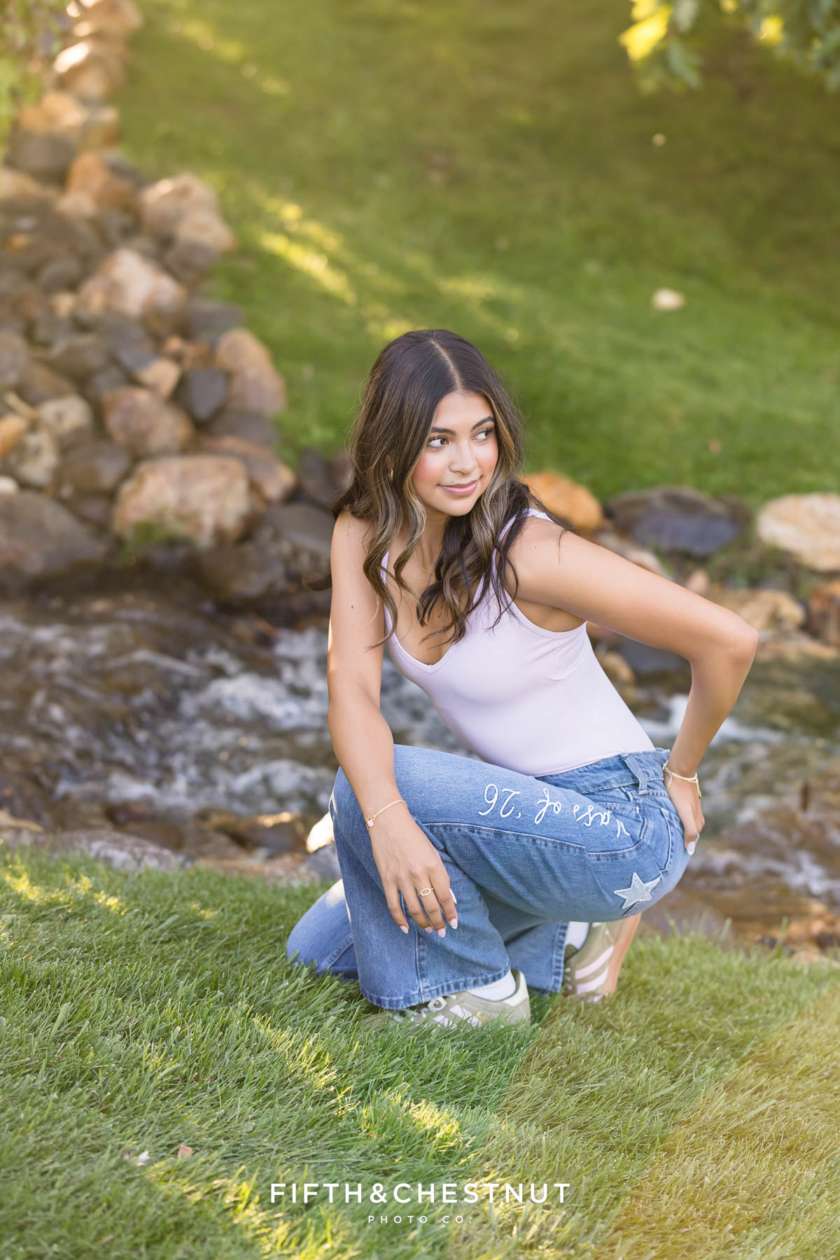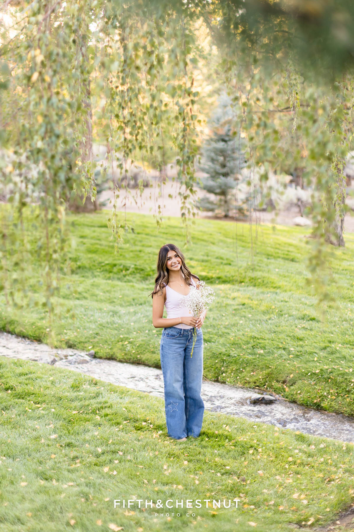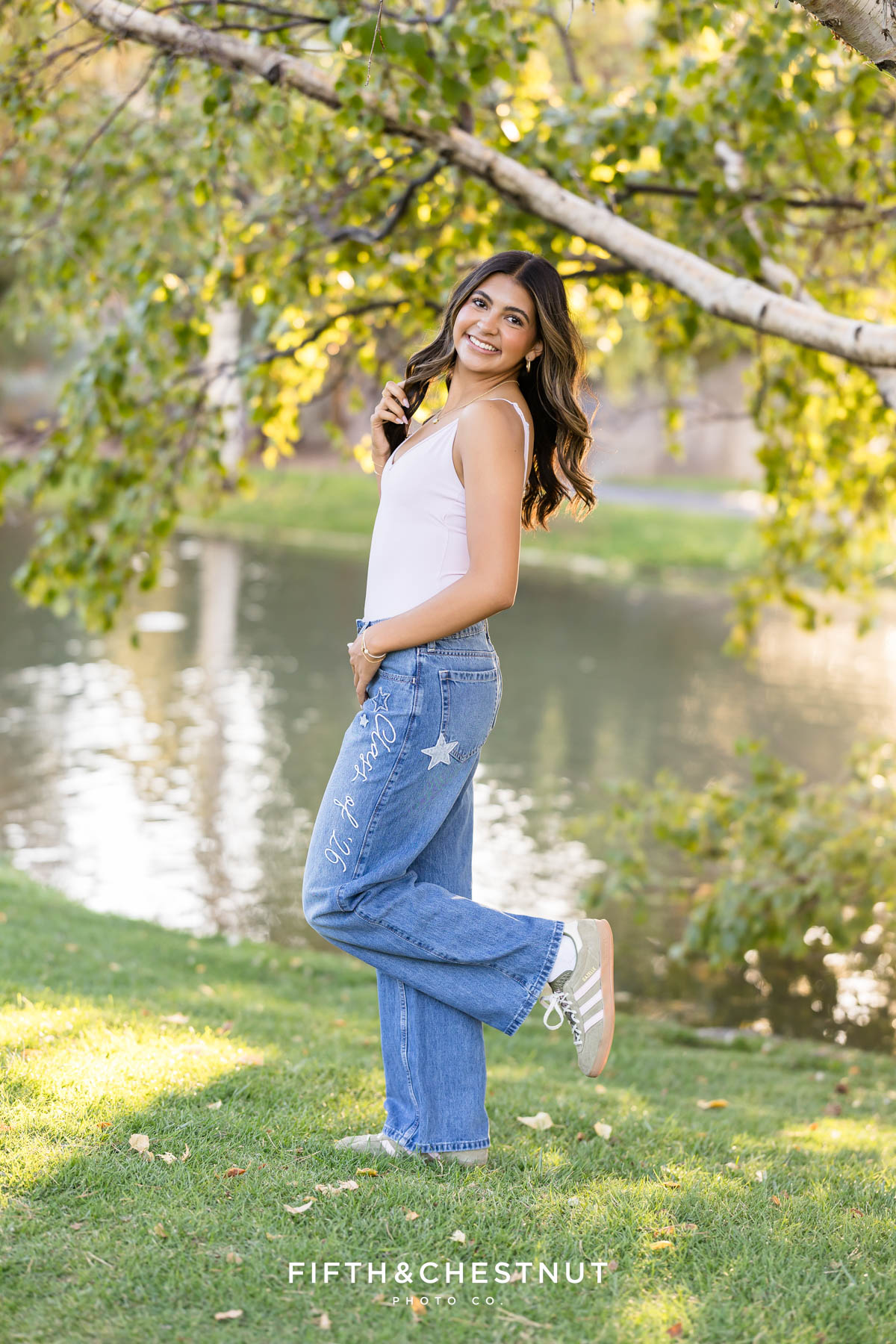 Later, Lily changed again into a relaxed outfit with jeans and a fitted top. This final look felt casual and confident. It was a perfect way to end her early fall senior photos in Reno.