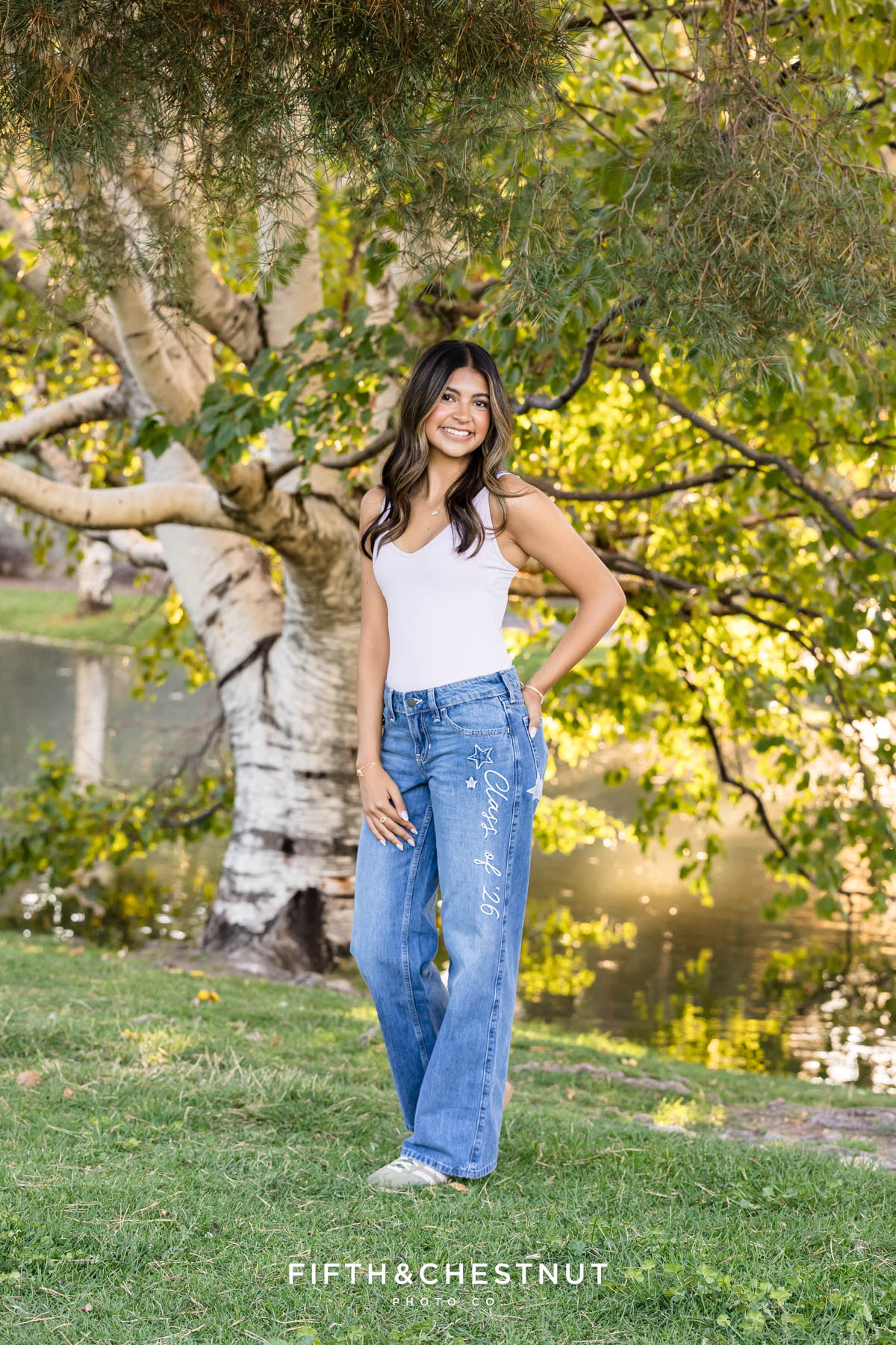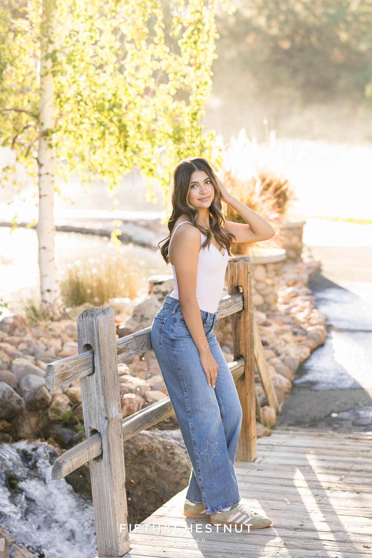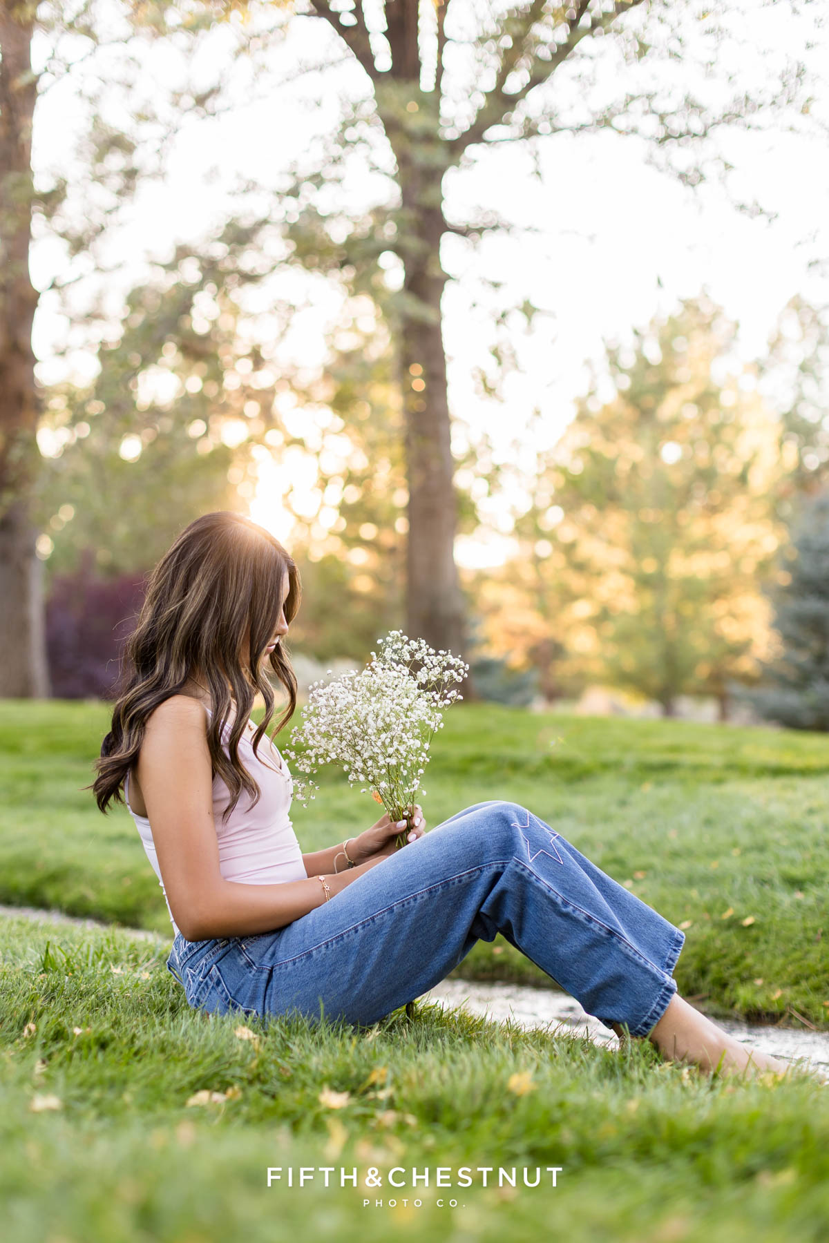 Later, Lily changed again into a relaxed outfit with jeans and a fitted top. This final look felt casual and confident. It was a perfect way to end her early fall senior photos in Reno.