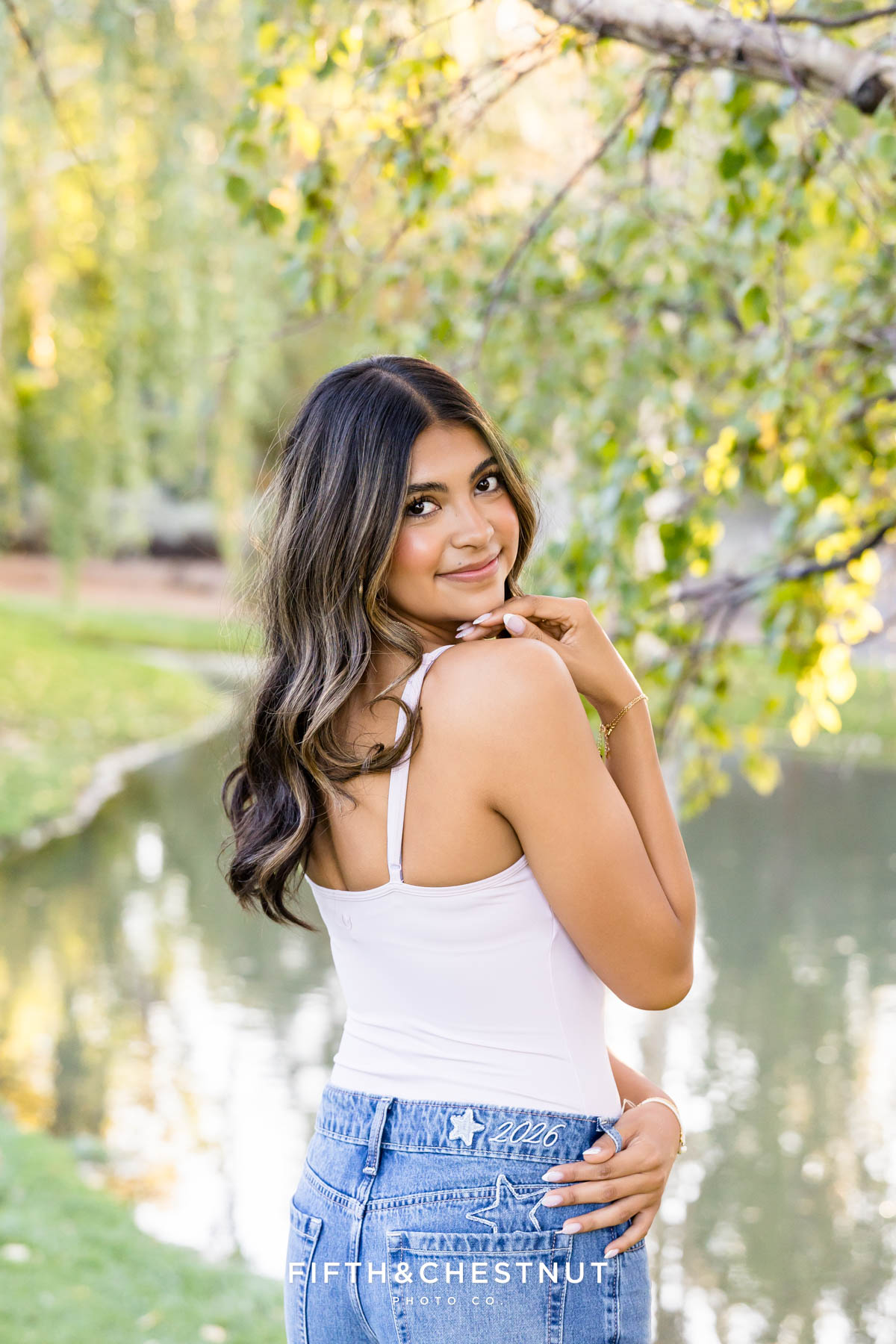 Next, we headed to the ponds in Caughlin Ranch as the evening light started to glow. This area is one of my favorite places for Reno senior photos because the water reflects the sunset so beautifully.