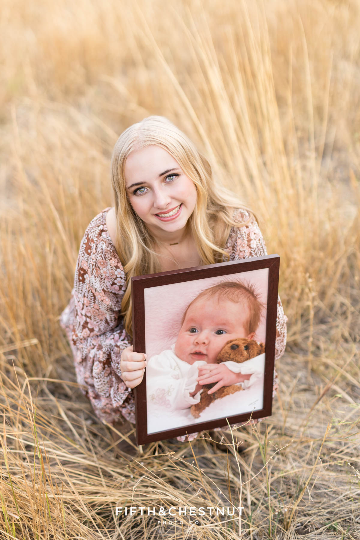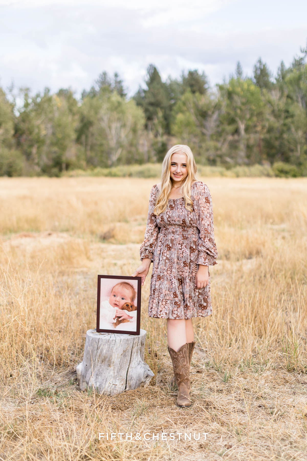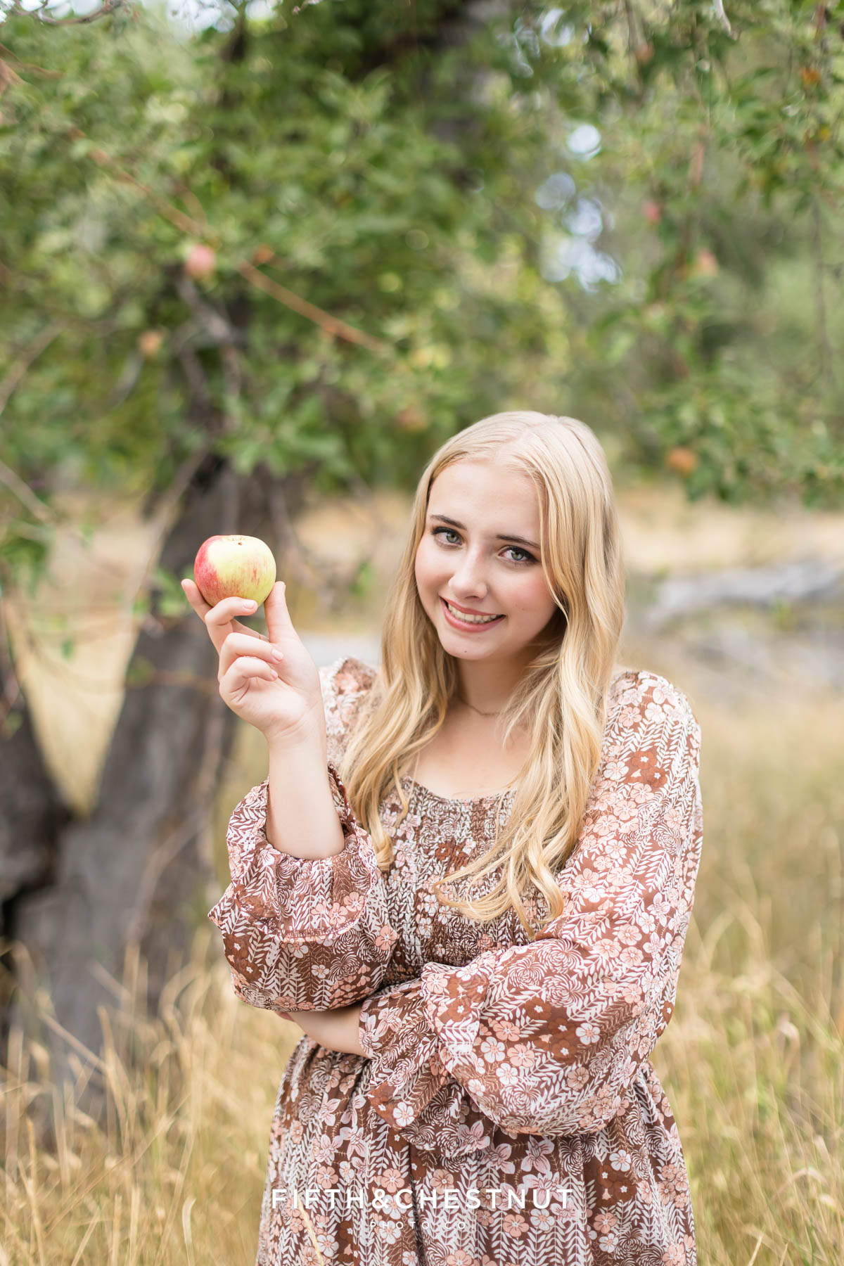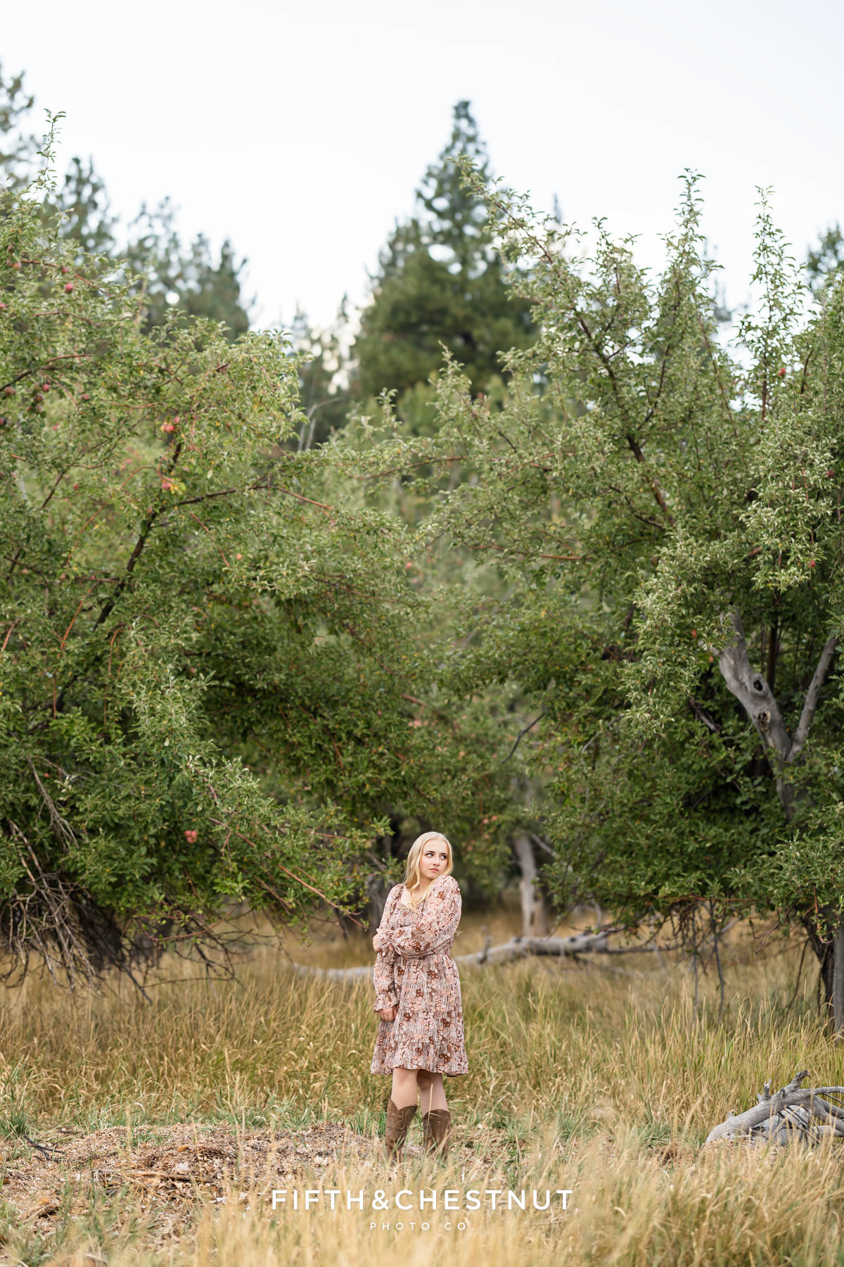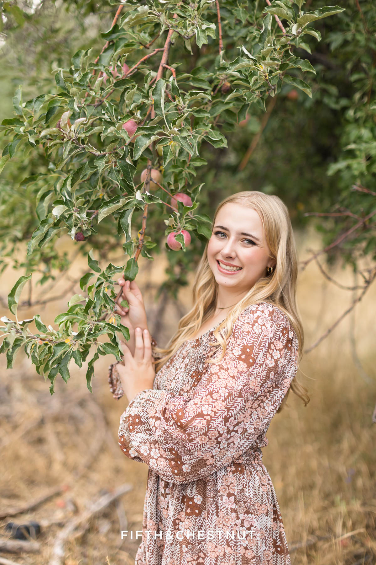 From there, we moved into the Verdi apple orchard. Jordan changed into a pretty fall dress that felt soft, warm, and timeless. This was one of my favorite parts of her session. In the orchard, Jordan brought out a framed baby photo, and capturing her holding that piece of her story was incredibly special. This added so much heart and depth to her senior portraits – making this part of the session truly unforgettable. Especially the images of Jordan with her mom!