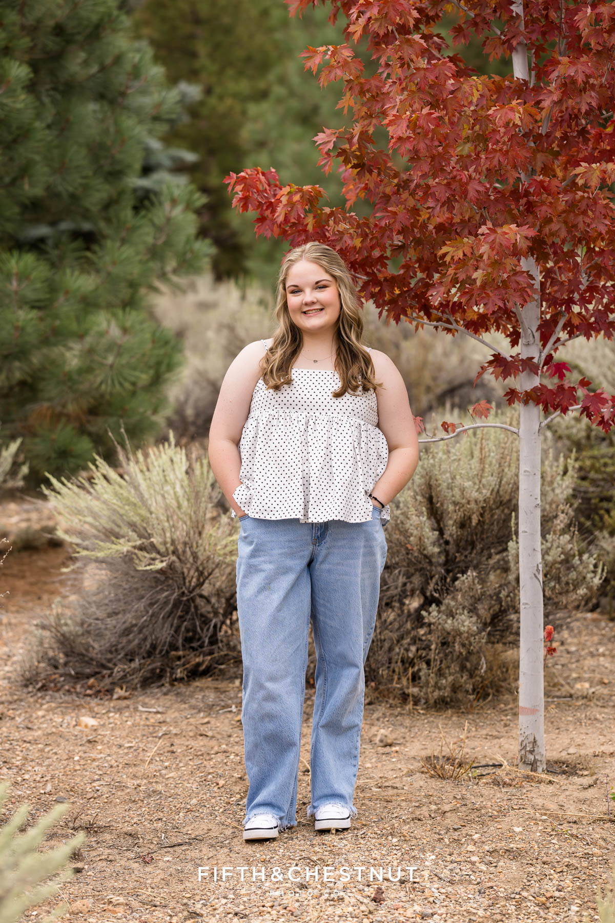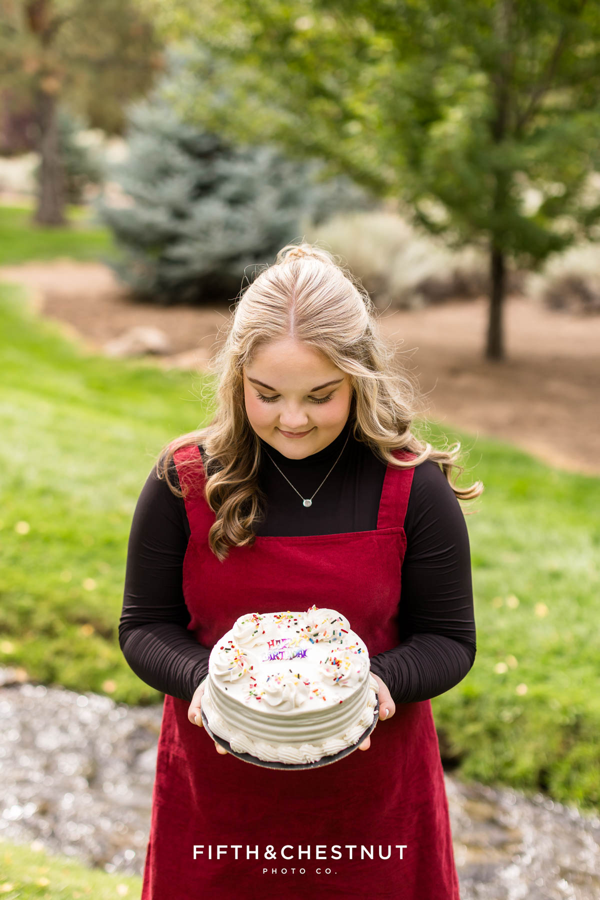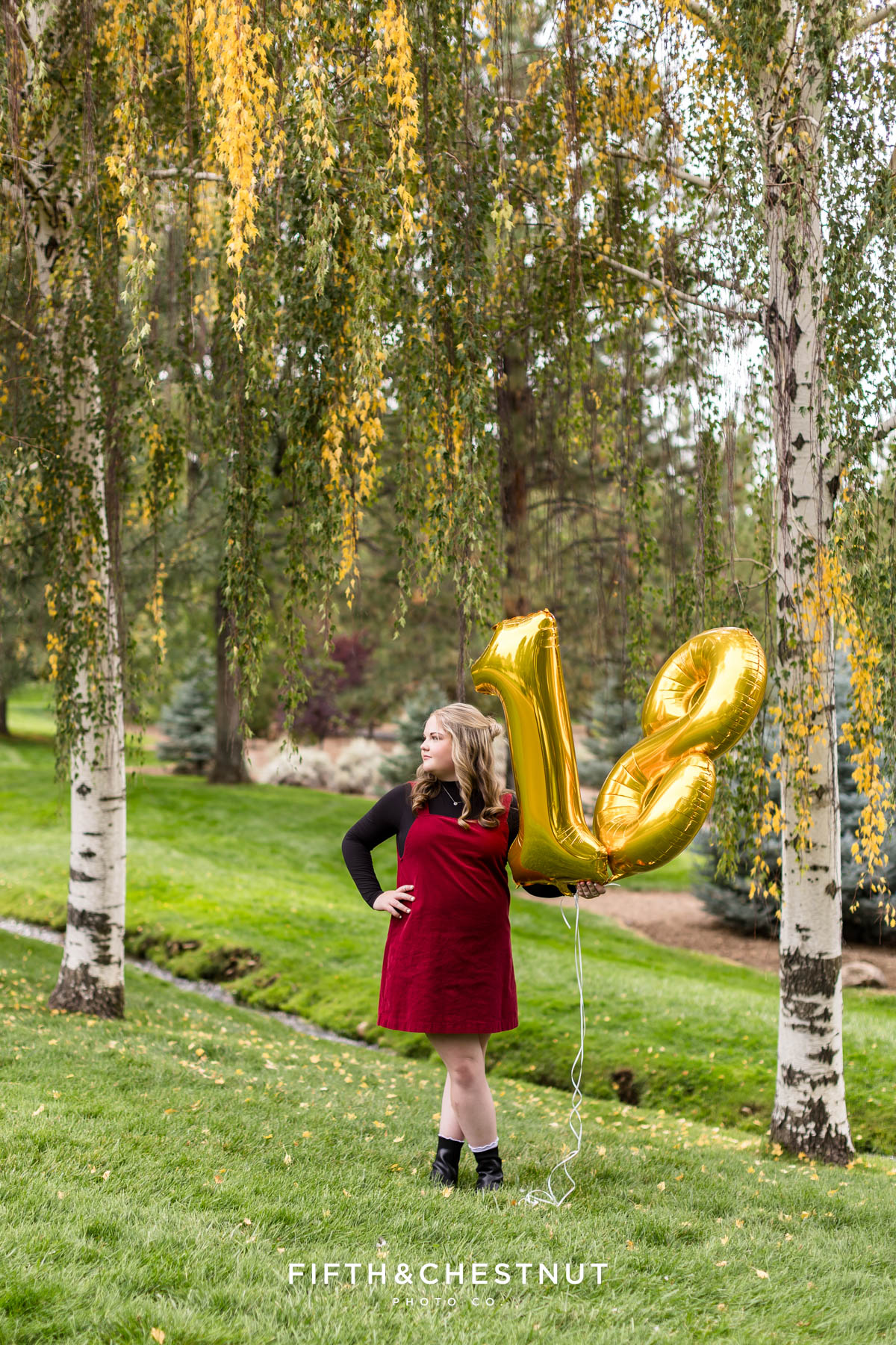 At Caughlin Ranch, we found the perfect early fall touch with some golden leaves already making an appearance! It was the ideal backdrop for her birthday celebration during the shoot – complete with balloons and a mini cake. Turning 18 is a huge milestone, and I loved that Emma and her mom wanted to document that moment alongside her senior portraits.
